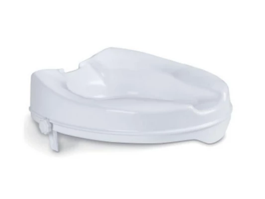 Elevador de inodoro ergonómico que añade altura para facilitar el acto de sentarse y levantarse. Incorpora soportes laterales regulables en anchura para adaptarse a diferentes tipos de inodoros. Su diseño con ligera inclinación negativa ayuda a mantener una postura correcta y reduce la presión de apoyo en cadera y rodillas.