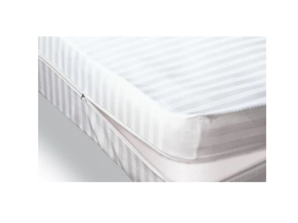 Funda impermeable tipo cutí con recubrimiento PU, en color blanco y con cierre de cremallera. Diseñada para adaptarse a colchones de distintas anchuras (90/105/135/150/180/200 cm).