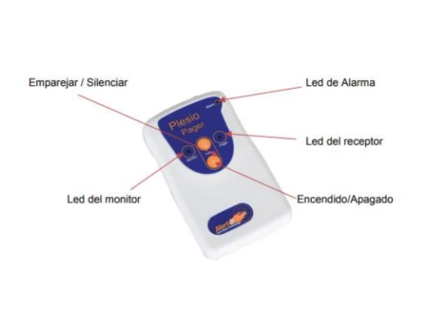 Dispositivo receptor inalámbrico capaz de gestionar señales de hasta tres usuarios distintos, como sensores de cama, silla o alfombra. Al recibir la señal, activa alertas visuales y/o sonoras, permitiendo el control simultáneo de varios pacientes o zonas.